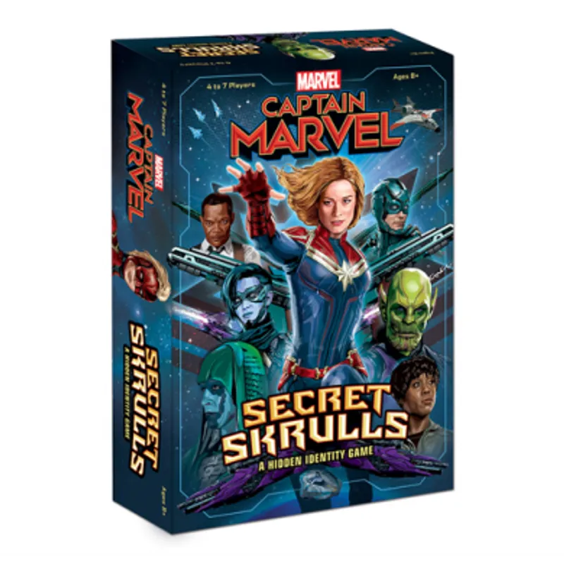 Captain Marvel: Secret Skrulls je društvena igra tajnih identiteta ukojoj igrači preuzimaju uloge nekih od svojih omiljenih Marvelovih junaka, uključujući i Kapetan Marvel lično, kako bi odbranili Zemlju u intergalaktičkom ratu protiv Skrulls-a.
