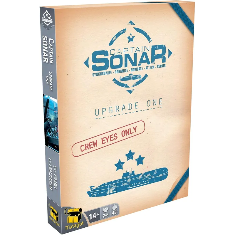 Captain Sonar: Upgrade One je ekspanzija koja dodaje nove elemente na već postojeću igru, uključujući 5 novih scenarija, 2 nova oružija, 8 piši-briši markera i drugačije načine igranja uloge kapetana i radio operatera.