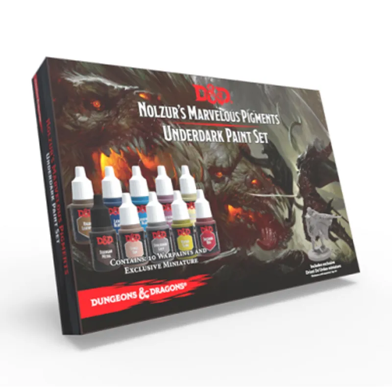 Nolzurs Marvelous Pigments Underdark Paint Set je kao i svi setovi vezani za Dungeons and Dragons, jedinstven... Sve boje iz ovog seta mogu se naći samo tu i nigde više a od promotivnih stvari tu je i figurica naravno. A figurica je Exclusive Drizzt Do’Urden.