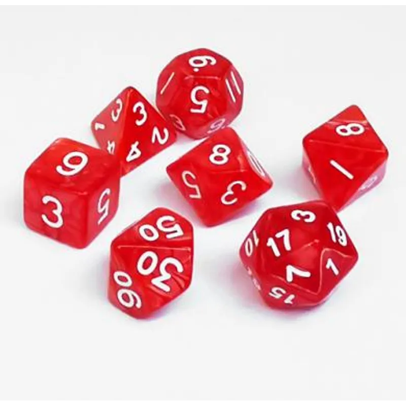 Set sadrži 7 kockica: 1xD4,1xD6,1xD8,1xD10,1xTens 10 (procentualna kockica),1xD12 i 1xD20