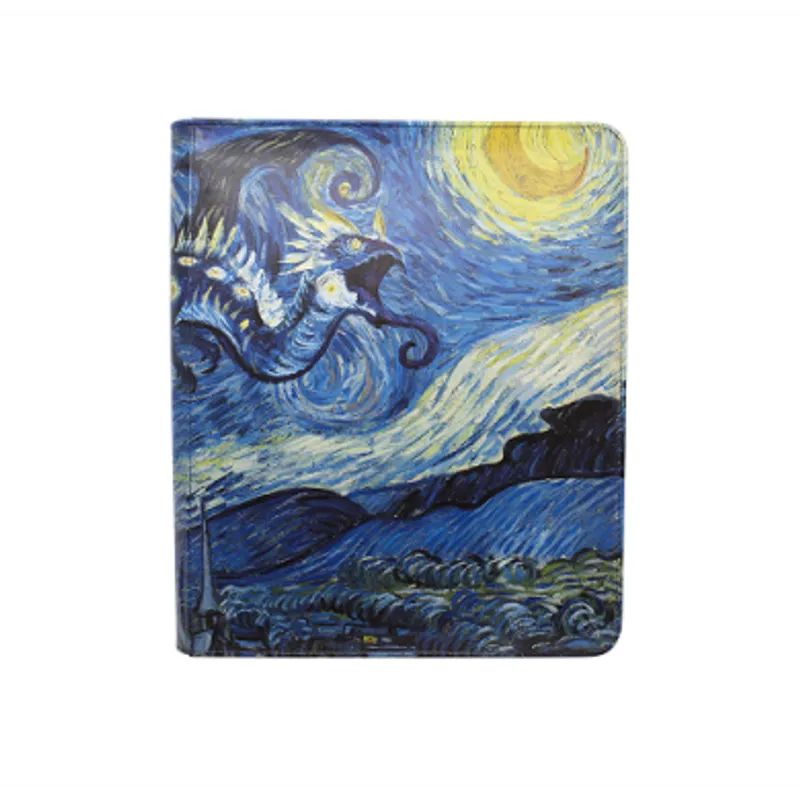 Dragon Shield Starry Night Zipster Binder je album za čuvanje karata pogodan za sve TCG kartične igre (Yu-Gi-Oh!, MTG, Pokemon...) i standardne veličine karata koje se nalaze u većini društvenih igara bilo da su u zaštitama za karte takozvanim slivovima ili ne. U ovaj album može da stane 20 stranica za karte što Vam omogućava da čuvate do čak 360 karta! U albumu se kao primer već nalazi nekoliko stranica. Ovaj ekskluzivni binder napravljen je za izmenljive stranice standardne veličine. Radi dodatne sigurnosti sadrži rajfešlus, što omogućava dodatnu sigurnost za Vaše karte. Radi ojačanja dodate je i tvrda, savitljiva akrlina ploča unutar poklopca koj sprečava oštećenja.
