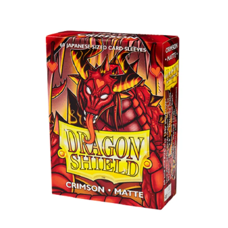 "Dragon Shield Crimson Matte Sleeves" zastite za karte su dizajnirane da zaštitite vase karte od habanja, prljanja i cepanja tokom igre. Napravljeni su od polipropilena, dok ujedno imaju matiranu pozadinu. Svako pakovanje sadrži 60 slivova dimenzija prilagodjenih za Yu-Gi-Oh! kartičnu igru.