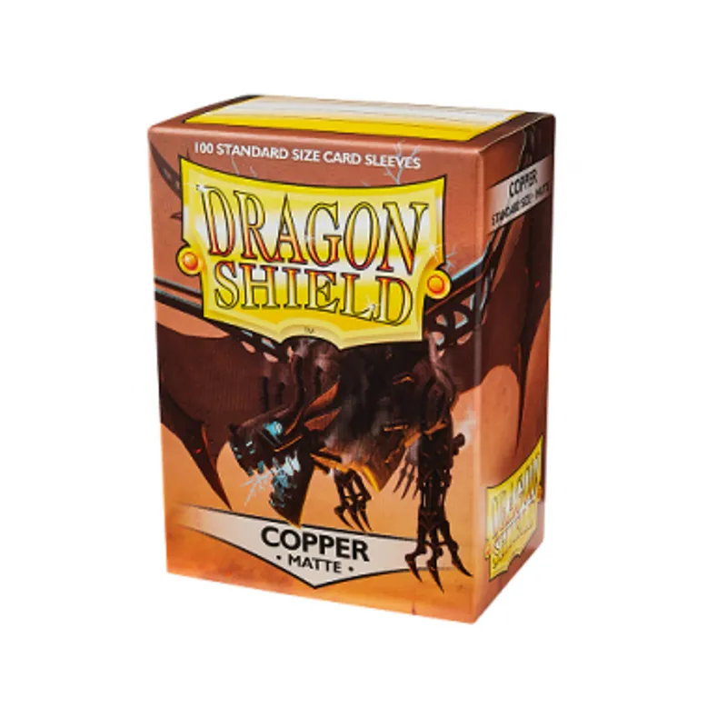 Dragon Shield Standard Copper Matte zaštite za karte su dizajnirane da zaštitite vase karte od habanja i cepanja u toku igranja. Napravljeni su od polipropilena, svaki paket sadrži 100 slivova. Dimenzije su standard 63,5x88 i odgovaraju Magic the Gathering kartama, Pokemon kartama i svim ostalim kartama standard veličine.