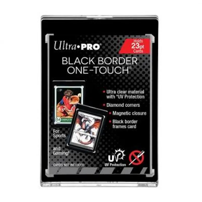 Ultra Pro One Touch 23pt Toploader Black Border je kvalitetan toploader koji će Vam pružiti najbolju moguću zaštitu za Vaše najvrednije karte. Napravljen je od posebne vrste plastike, a kao dodadno osigurnanje sadrži magnet tako da će Vaše karte održati čistim i sjajnim, kakve su bile od prvog trenutka kad ste ih dobili!