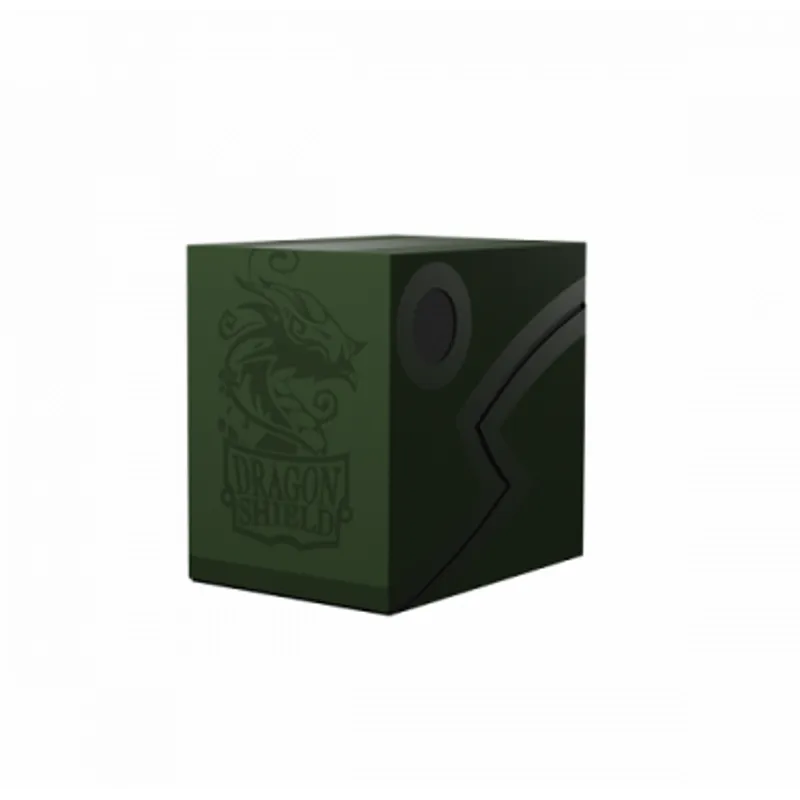 Dragon Shield Dobule Shell Forest Green/Black čvrsta kutijica sa dva sloja zaštite za čuvanje do 100+ karata (Pokemon, Yu Gi Oh, MTG ili bilo koji TCG sa standardnom veličinom karata) zaštićenih slivovima. Poklopac se obmotava oko kutije radi sigurnijeg zatvaranja ili se može potpuno rasklopiti radi lakšeg pristupa kartama. Svaka Double Shell kutijica sadrži separator za karte i na vrhu ima polje za zapisivanje.