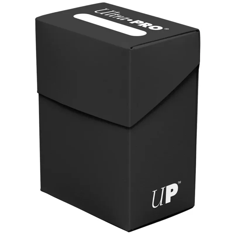 The Ultra PRO PRO 80+ Deck Box Black will safely store up to 80 sleeved cards (Pokémon, Yu-Gi-Oh, MTG, or any TCG with standard-sized cards). The lid is designed to self-lock upon closing, ensuring the safety of your cards from falling out if the box is turned upside down. Ultra Pro Plain Deck Box containers are made of durable material and are easy to maintain.