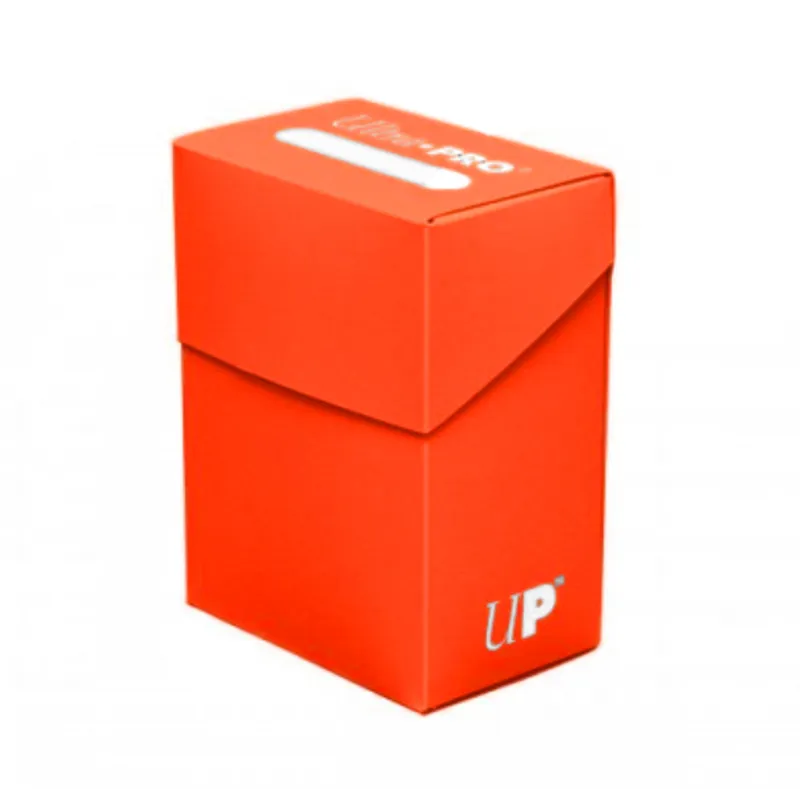 Kutijica Ultra PRO Orange Solid će bezbedno da čuva do 80 karata (Pokemon, Yu Gi Oh, MTG ili bilo koji TCG sa standardnom veličinom karata) zaštićenih slivovima. Poklopac je dizajniran tako da se prilikom zatvaranja sam zaključa i time osigura bezbednost vaših karata od ispadanja ako se kutijica okrene naopako. Ultra Pro Plain Deck Box kutijice su napravljene od otpornog materijala i lake su za odrzavanje.