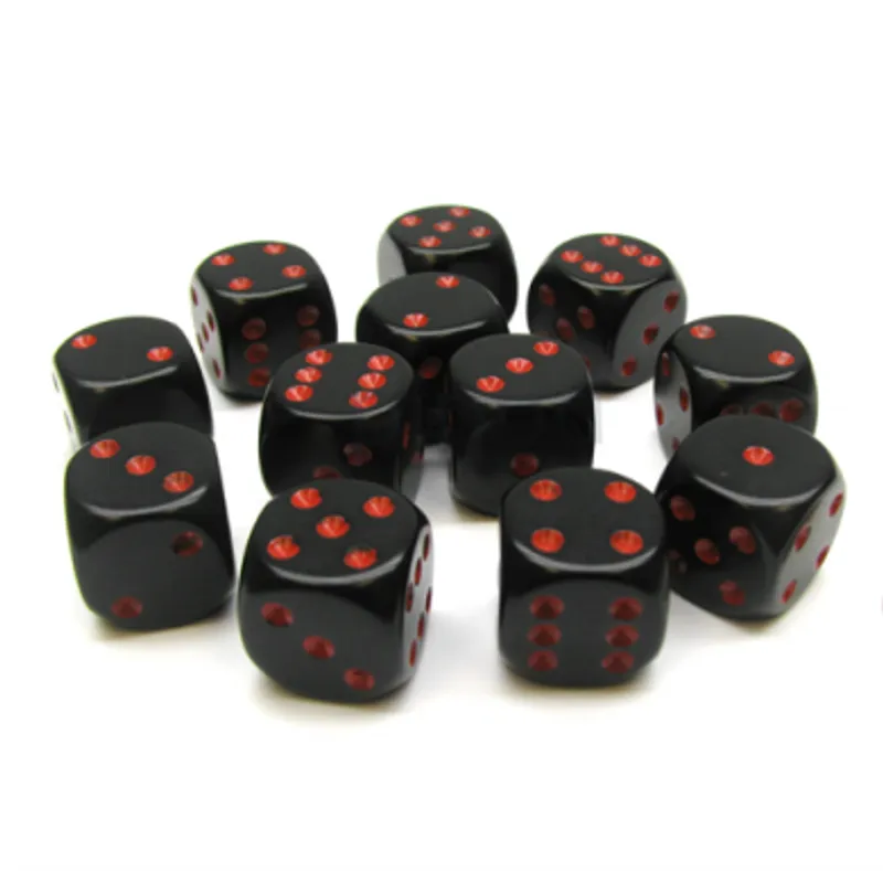 Chessex Opaque Black with Red 16mm D6 Dice Block (12 Dice)