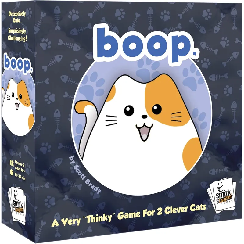 As the game progresses, kittens grow into cats, which are even harder to move. The first player to successfully line up three adult cats in a row wins! With beautiful production and simple yet deep rules, Boop is the perfect combination of tactics and charm. Try to win, if you can!