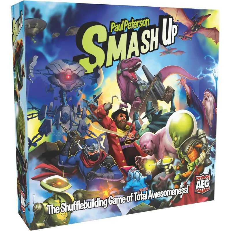 The "shufflebuilding" board game Smash Up! has a simple premise: Take two decks of different factions, shuffle them together into a 40-card deck, and then compete for bases that grant victory points. Each faction brings a different mechanic to the game—pirates move cards from base to base, zombies return cards from the discard pile, dinosaurs have massive attack power—and every new combination of factions delivers a fresh gameplay experience.