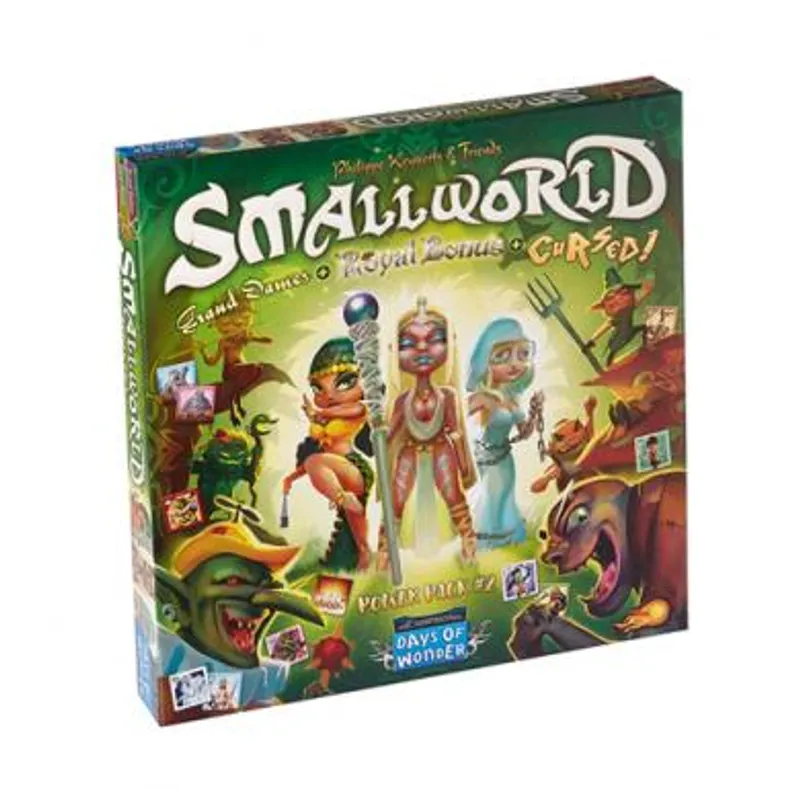 Small World: Power Pack 2 svih osam rasa i deset specijalnih moći iz Cursed!, Grand Dames of Small World i The Royal Bonuses ekspanzija sa sve poslužavnikom za krađu svih tokena.