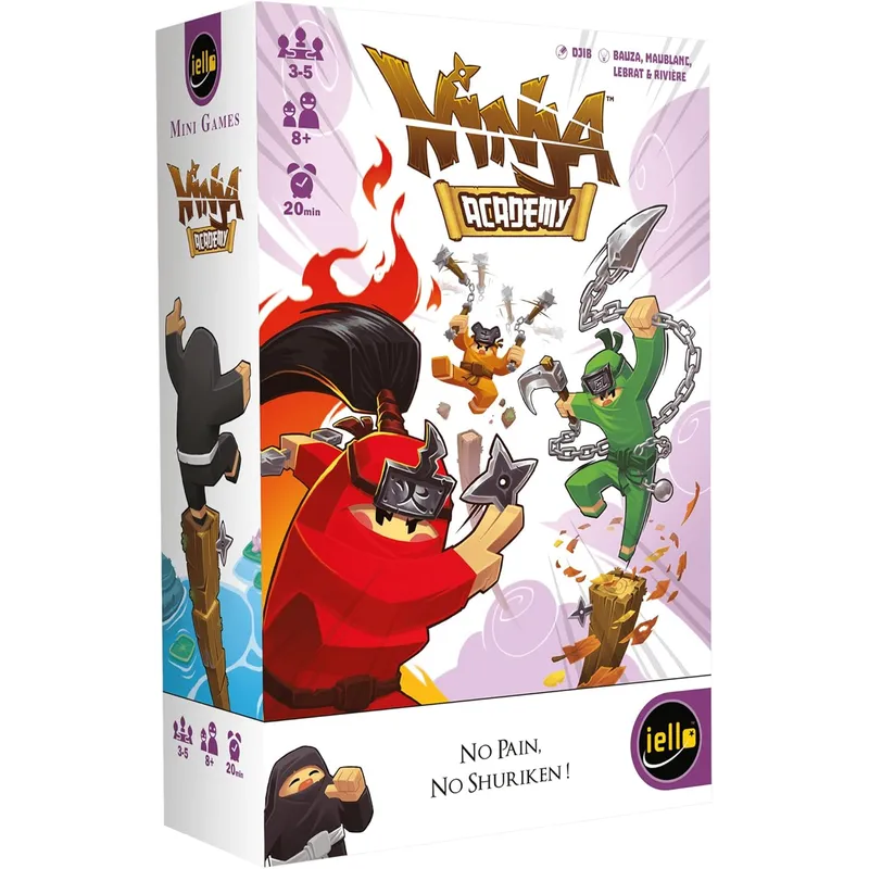 The board game Ninja Academy is a hilarious, dynamic, and skill-based game that can be played again and again!