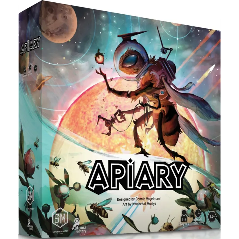 The board game Apiary gives players the opportunity to control one of twenty unique factions. Your faction starts with a single hive, a few basic resources, and worker bees. The challenge before you is to deploy your workers and upgrade your hive. Explore planets, gather resources, and develop new technologies to demonstrate the strength of your faction. Be cautious, as you do not have much time before the decisive moment. Can you make your faction thrive, or will you merely enable it to survive?