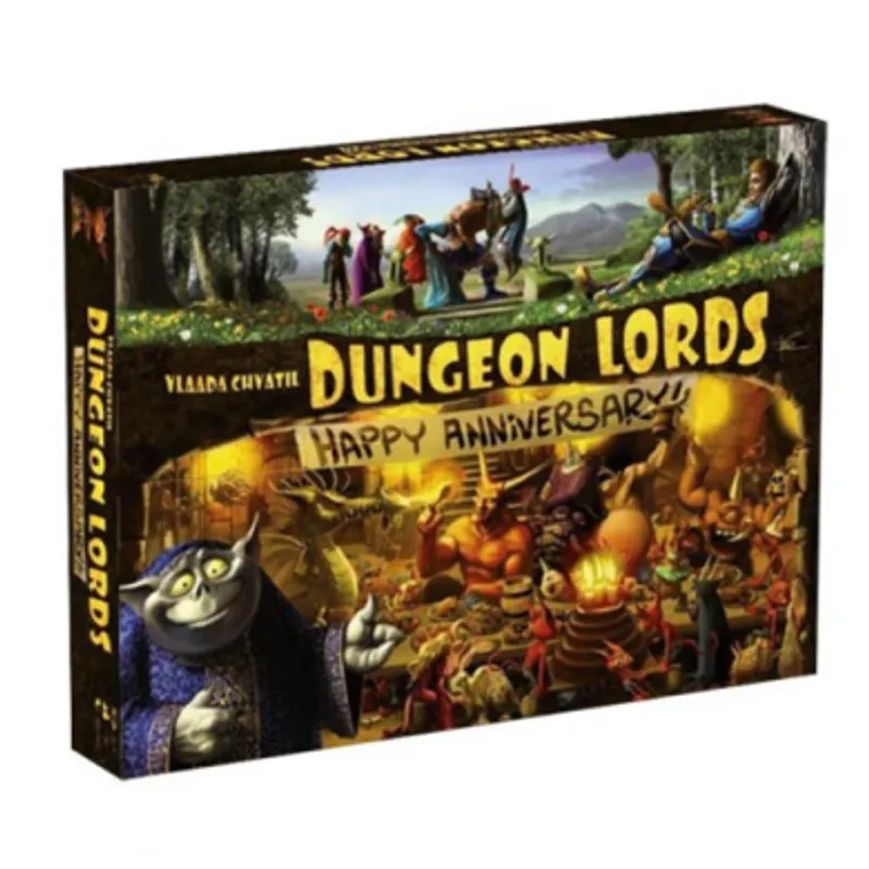 Dungeon Lords: Happy Anniversary je specijalno pakovanje igre Dungeon Lords. U ovom paketu pored osnovne igre dobijate i ekspanziju Festival Season koja donosi petu sezonu u godini, nova čudovišta i magije, dobijate i mini ekspaziju Dungeon set-up kao i nalepnice za tokene hrane i metalne novčiće. Prava poslastica za ljubitelje igre Dungeon Lords!