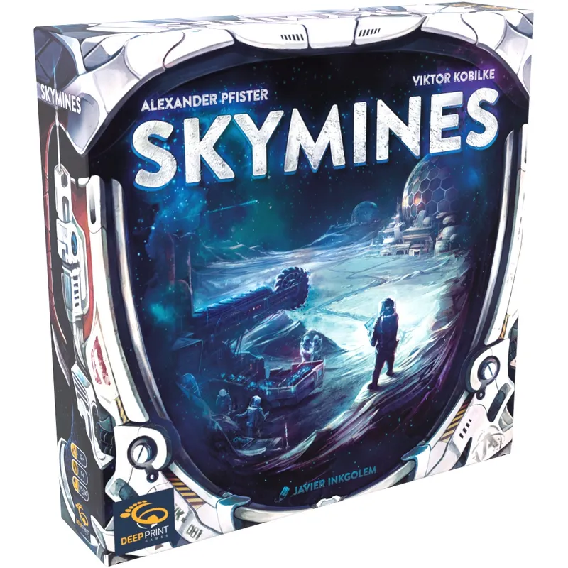 The board game Skymines casts you and your friends in the roles of investors. Your goal is to earn the most CrypCoin over the course of seven rounds. You do this by investing mining resources into companies and expanding their outposts. You can improve your earnings by supporting your scientists' research and having them collect precious Helium-3!