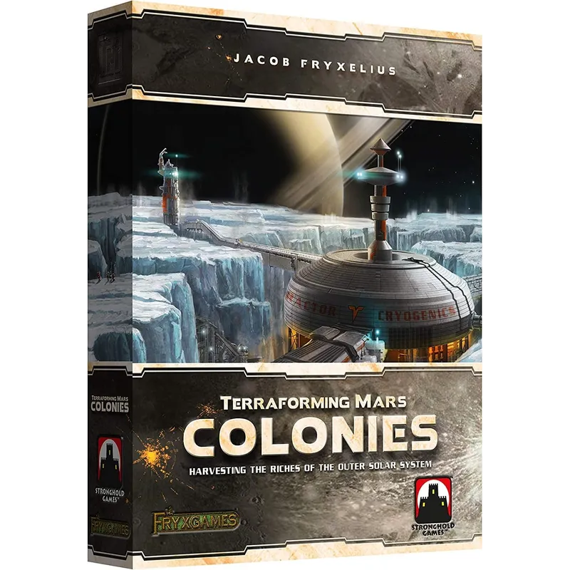 Terraforming Mars: Colonies is another expansion for the base board game Terraforming Mars. It can be played with just the base game or with any combination of expansions, allowing you to visit the outer Solar System. it features Colony tiles where you can build colonies and send your trade fleet. It also includes new cards and corporations!