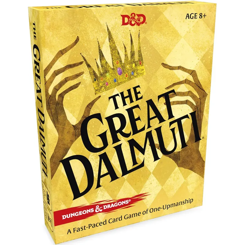 The board game D&D: The Great Dalmuti is a fast-paced card game in which you try to play the cards you've been dealt as effectively as possible to earn prestige and win! In this game, your only focus is to get rid of your cards, but don't get too comfortable—having just one card left in your hand doesn't necessarily mean you're closest to victory! If you play your cards right, you'll enjoy polishing your crown; otherwise, you might end up in a muddy street surrounded by rats! Do you have enough courage, skill, and cleverness to compete in this game full of twists and emerge victorious?