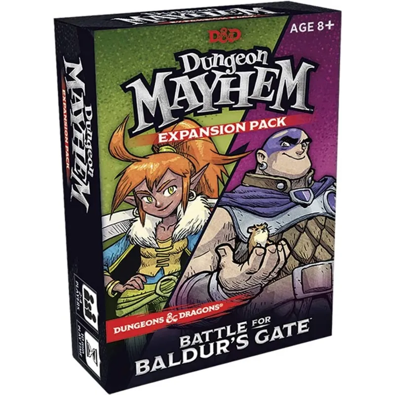 Battle for Baldur’s Gate is the first expansion for the popular, light, and family-friendly game Dungeon Mayhem. Featuring brand-new artwork, this expansion unleashes two completely new characters from Baldur’s Gate.