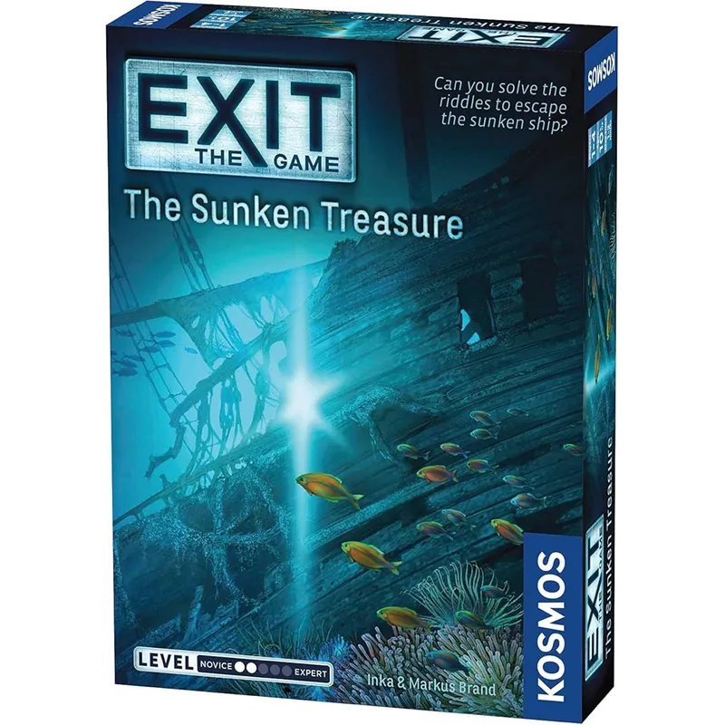 The board game Exit: The Sunken Treasure introduces you to an ESCAPE ROOM environment where players must possess team spirit, creativity, and the power of deduction to solve riddles, collect hidden objects, and find the EXIT. Otherwise, you will literally be sunk.