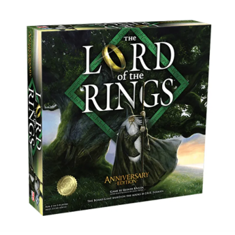 The Lord of the Rings: The Board Game Anniversary Edition predstavlja ediciju klasične društvene kooperativne igre, koja izaziva Vas i još četiri igrača da igrate kroz čitavu trilogiju, od dugog mraka Morie I svirepih bitaka pod zidinama Helm’s Deep-a, sve do senki Shelob’s Lair-a i prašnjavih otpada Mordor-a.