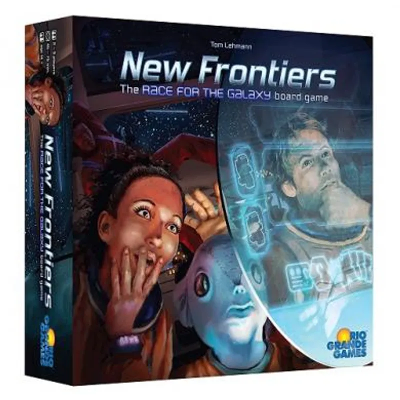 Društvena igra New Frontiers vas vodi u „Race for the Galaxy“ univerzum. Ljubitelji igara Race for the Galaxy i Puerto Rico uživaće jer ova igra deli elemente obe.
