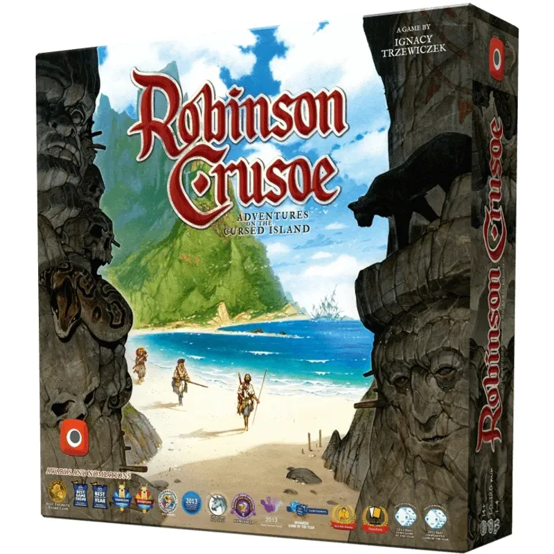 The board game Robinson Crusoe: Adventures on the Cursed Island is an adventurous cooperative game for one to four players. Before each game, a scenario is chosen to determine how the story will unfold, meaning that the objective, discoveries, card effects, number of rounds, and even the weather conditions will depend specifically on the selected scenario.