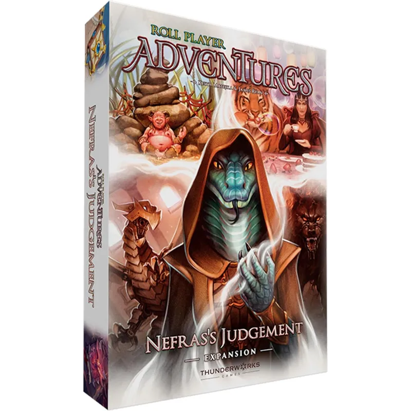 The Roll Player Adventures: Nefras's Judgement expansion for the board game Roll Player Adventures contains 41 background stories that are integrated into the base game. Each player will face unique encounters and make choices that will lead you through interesting narratives.