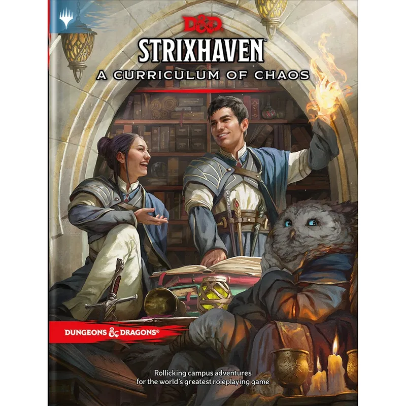 Strixhaven: A Curriculum of Chaos introduces you to the fantastic Magic: The Gathering multiverse and provides rules for creating characters who are students at one of the five colleges. Characters can explore the environment through four adventures that can be played independently or together. Each adventure describes an academic year filled with scholarly activities, campus pranks, exciting friendships, hidden dangers, and perhaps even romance.