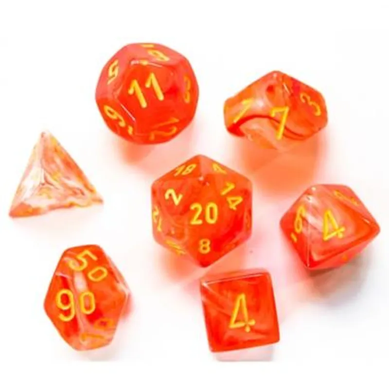 Chessex Ghostly Glow Orange with Yellow 7-Dice Set