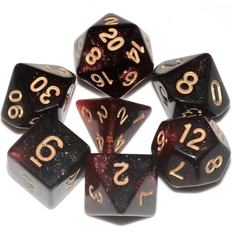 Kaissa Starry Red Black with Gold 7-Dice Set