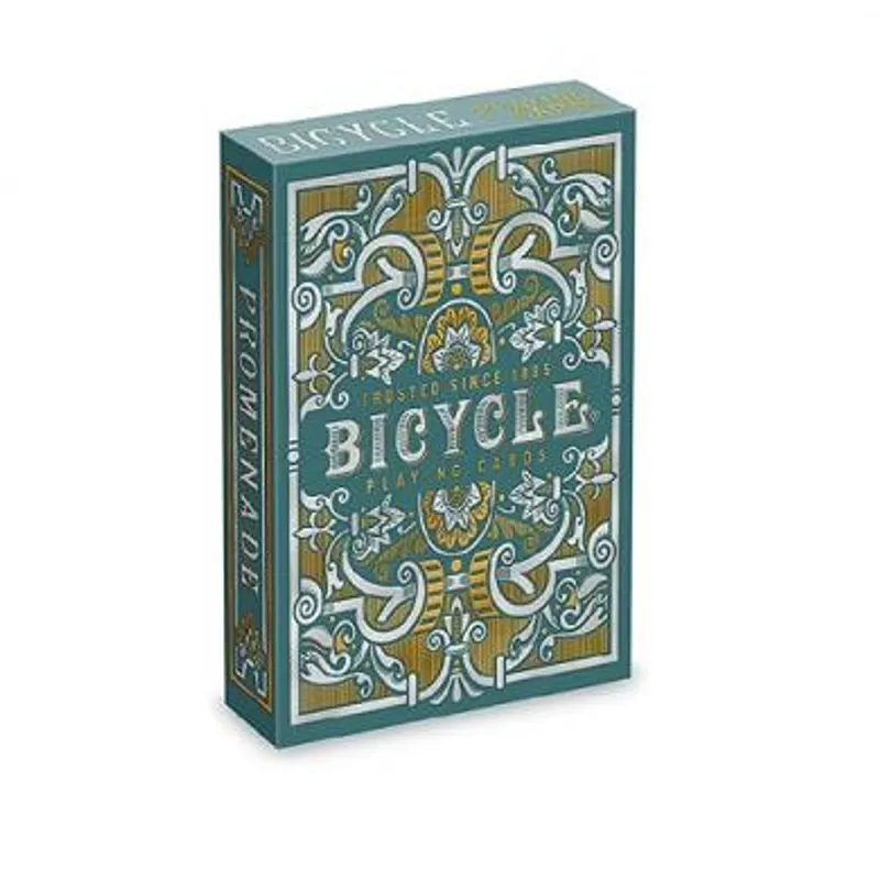 Bicycle Promenade su karte prelepog izgleda za sve koji pridaju poseban značaj estetici. Ideja za dizajn ovih karata nastala je na osnovu starijeg modela prvobitno štampanog oko 1900. godine. Originalni dizajn unapređen je modernim, vrhunskim završnim obradama sa akcentima od srebrne i zlatne folije. Ovaj špil karata je neophodan za svakog ko traži jedinstvene karte koje savršeno leže u rukama, na stolu ili kao ukrasni detalj kada ih ne koristite!