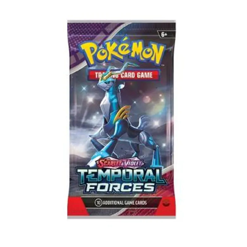 Redovi Drevnih i Budućih Pokemona nastavljaju da rastu! Walking Wake ex oslobađa se prošlosti zajedno sa Raging Bolt ex, dok Iron Leaves ex donosi visokotehnološku pravdu sa Iron Crown ex. Outside Area Zero, Vugtrio i Farigiraf se menjaju u novi tip kao Tera Pokemon ex, i Pokemon treneri svuda se pripremaju za povratak ACE SPEC kartica sa jedinstveno moćnim efektima. Procep u vremenu dovodi divlje zveri i sajber vizije u bitku u ekspanziji Pokemon TCG: Scarlet & Violet—Temporal Forces!