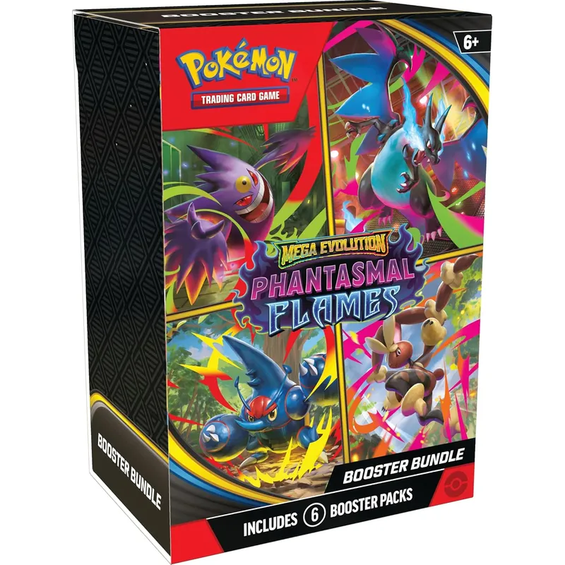 The Booster Bundle is the fastest way to significantly expand your collection of cards from this exciting expansion. This bundle contains six Pokémon TCG Mega Evolution - Phantasmal Flames Booster Packs !