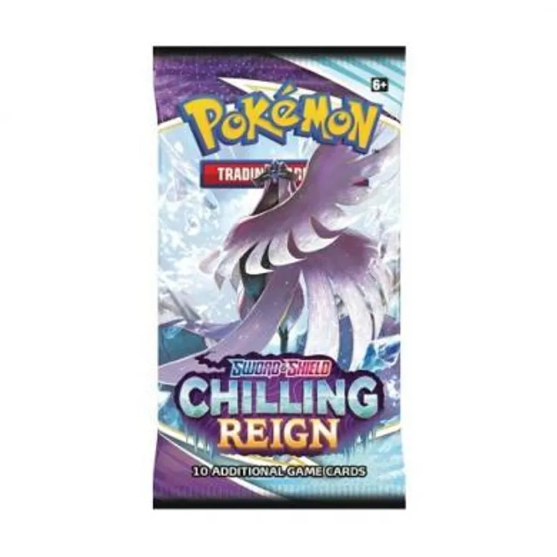 Svako Pokemon TCG Sword and Shield Chilling Reign Booster pakovanje sadrži 10 karata + 1 kartu energije.