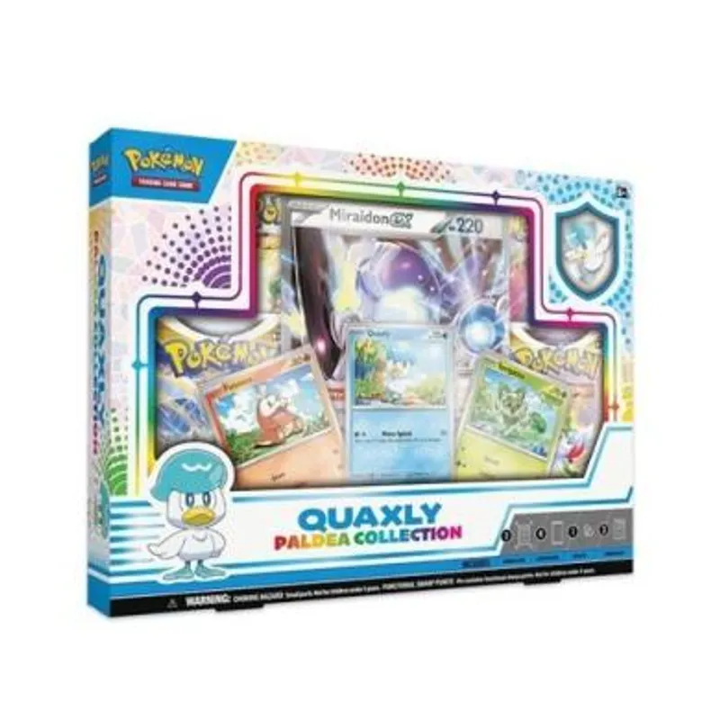 Pripremite se za potpuno novu avanturu u Paldea regionu uz Pokemon TCG Quaxly Paldea Collection! Prvi Pokemon partneri Sprigatito, Fuecoco i Quaxly pridružiće se vašoj kolekciji u vidu svetlucavih promotivnih karata, a Quaxly bedž će vam omogućiti da se pravite važni sa svojim patkastim Pokemon-om gde god da krenete. Otkrijte još više iznenđenja poput velike promotivne EX karte, kao i mnoštvom booster pakovanja uz pomoć kojih ćete proširiti svoju kolekciju karata.