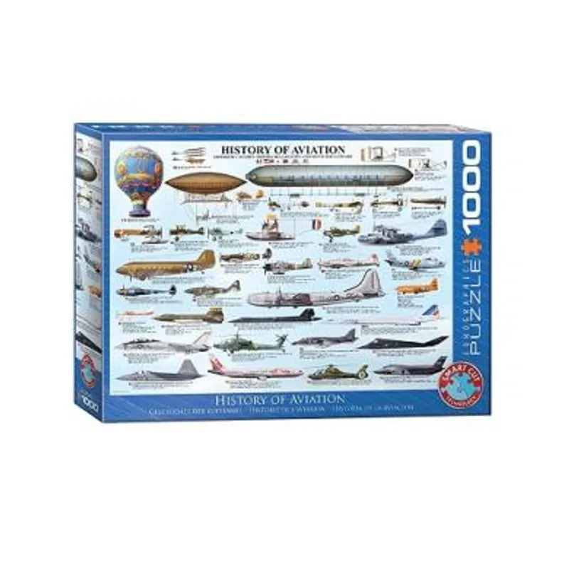 History of Aviation Puzzle je slagalica od 1000 delova sa kojom ćete upoznati sve letelice koje su ikada kružile nebom iznad nas. Ova slagalica sadrži razne modele, aviona, helikoptera, cepelina, balona od vremena kada su se prvi put pojavili do danas. Ukoliko uživate da upoznajete ove vladare neba a volite i da razvijate Vaše veštine slažući puzzle, ovo je prava slagalica za Vas!