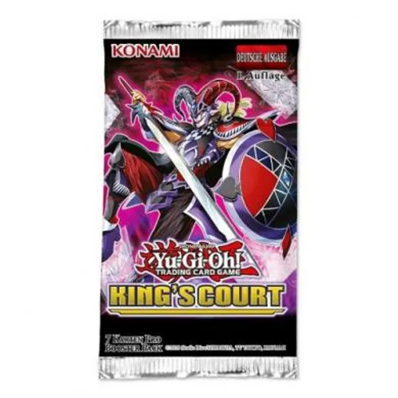King's Court donosi podršku za karte koje je koristio lično Yugi Moto. Karte kao što su: Kings Knight, Qeens Knight i Jacks Knight! Nova karta Joker's Knight se može specijalno prizvati iz ruke ako iz špila izbacite jednog od navedenih vitezova, dok Imperial Bower vam omogućava da iz špila prizovete dva viteza, ili ih dodate u ruku. Ali Joker ima još trikova u rukavu, spell i trap karate koje vam omogućavaju da prizivate vitezove iz špila na tablu ili da spojite u fuziju Arcana Knight Joker-a! Joker-ove karte se na kraju poteza mogu vratiti sa groblja u ruku tako što vitezove sa groblja vratite nazad u vaš špil. Ova reciklaža je odličan sistem za stvaranje čudovišta na tabli, neophodnih za prizivanje božanskih karata Obelisk, Slifer i Ra! Ovaj set je odlična podrška za ove špilove sa kojima ste imali vremena da se upoznate ranije, a u ovom setu kolekcionari imaju priliku da izvuku ove karte u legendarnoj Millenium Rare varijanti. Svaki booster sadrži 7 karata: 6 Rare + 1 Super Rare ili većeg reriteta. Ceo set King’s Court-a se sastoji od 62 karte: 10 ultra rare-ova, 15 super rare-ova, 37 rare-ova, 15 karata koje se mogu povući kao collectors rare.