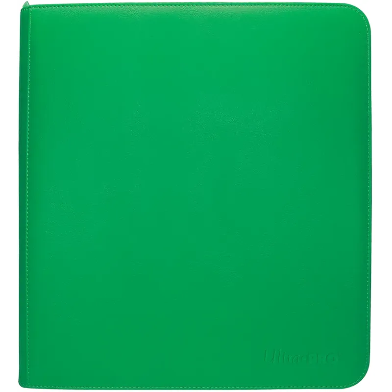 Album 12-Pkt Green Zippered PRO-Binder je pogodan za sve TCG kartične igre (Yu-Gi-Oh!, MTG, Pokemon...) i standardne veličine karata koje se nalaze u većini društvenih igara, bilo da su u zaštitama za karte takozvanim slivovima ili ne. Sadrži 40 listova koji se sastoje iz 24 pregrada (dvanaest po strani) što je sve ukupno 480 pregrada predviđeno za vaše karte. U pregrade može stati i više karata što je pogodno kod duplikata. Unapređen dizajn pregrada, karte se u pregrade ubacuju sa strane radi lakšeg pristupa i dodatne zaštite karata u vidu sprečavanja da iste ispadaju iz albuma. Korice su od meke kože, jednobojne sive boje sa utisnutim logotipom. Kao dodatno osiguranje da se album neće nepoželjno otvarati tu je i rajsferšlus po ivicama korica albuma.
