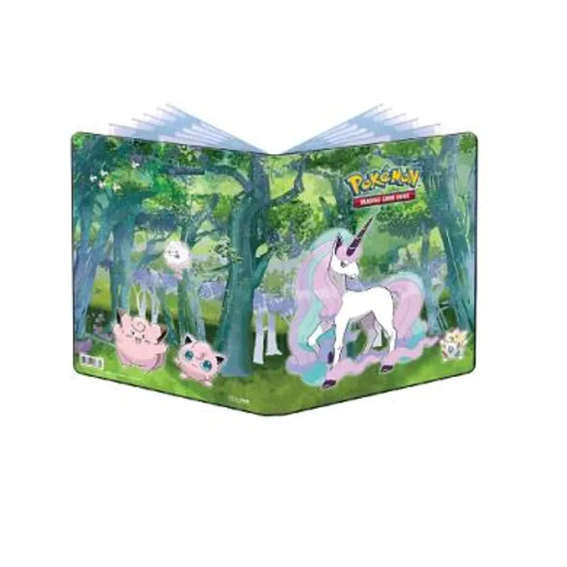 Pokemon Enchanted Glade 9-Pkt Portfolio je album pogodan za sve TCG kartične igre (Pokemon, Yu-Gi-Oh!, MTG...) i standardne veličine karata koje se nalaze u većini društvenih igara, bilo da su u zaštitama za karte takozvanim slivovima ili ne. Sadrži 10 listova koji se sastoje iz 18 pregrada (devet po strani) što je sve ukupno 180 pregrada predviđeno za vaše karte. U pregrade može stati i više karata što je pogodno kod duplikata. Unapređen dizajn pregrada, karte se u pregrade ubacuju sa strane radi lakšeg pristupa i dodatne zaštite karata u vidu sprečavanja da iste ispadaju iz albuma. Korice su od izdržljivog materijala (Plastic FREE).