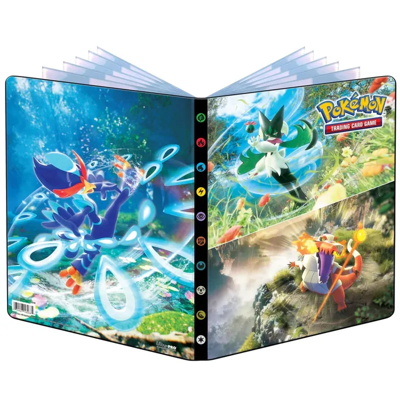 Pokemon Scarlet & Violet Skeledirge Meowscarada and Quaquaval 9-pkt Portfolio je album pogodan za sve TCG kartične igre (Pokemon, Yu-Gi-Oh!, MTG...) i standardne veličine karata koje se nalaze u većini društvenih igara, bilo da su u zaštitama za karte takozvanim slivovima ili ne. Sadrži 14 listova koji se sastoje iz 9 pregrada što je sve ukupno 126 pregrada predviđeno za vaše karte. U pregrade može stati i više karata što je pogodno kod duplikata. Unapređen dizajn pregrada, karte se u pregrade ubacuju sa strane radi lakšeg pristupa i dodatne zaštite karata u vidu sprečavanja da iste ispadaju iz albuma. Korice su od izdržljivog materijala (Plastic FREE).