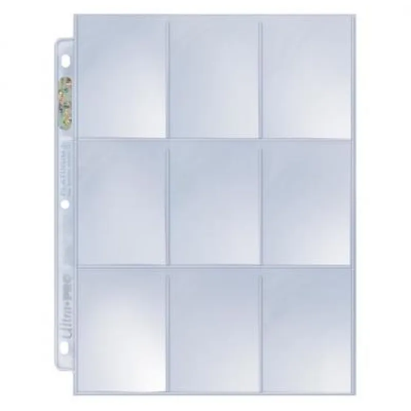 Ultra Pro 9-pkt Clear Pages stranice za skladištenje i čuvanje karata standardnih dimenzija, sačuvaće vaše karte od oštećenja. Stranice su napravljene tako da se savršeno uklapaju u bindere, a svaka stranica ima po 9 mesta za karte (samo sa jedne strane).