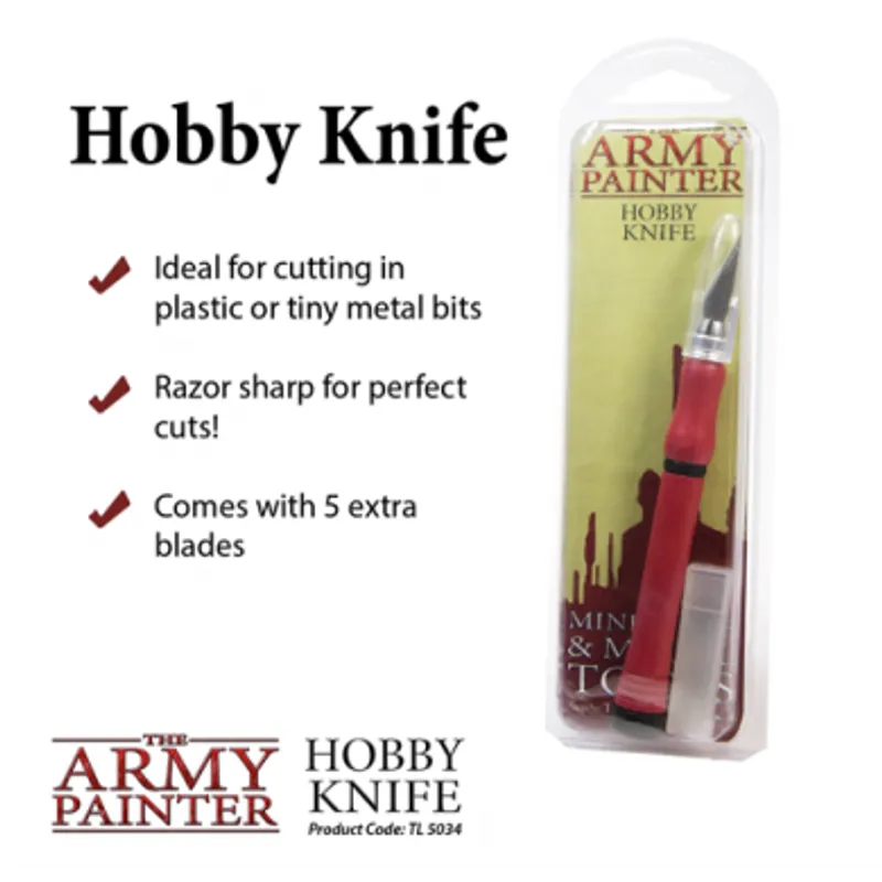 Hobby Knife je namenjen sečenju manjih metalnih ili plastičnih delova na figurama ili modelima. Idealan za prilike kada je potrebna preciznost i savršen rez. Gumena drška će obezbediti optimalno i lagano držanje kao i sigurnost u sečenju. Sečiva se menjaju lako i za razliku od kineskih kopija čvrsto stoje u ručici, a time Vam daju sigurnost u sečenju. U pakovanju se dobija i dodatnih pet sečiva za ovaj nožič.