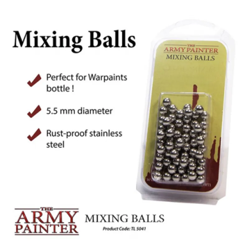 Glavna uloga Mixing Balls je da Vam produži vek boja i da obezbedi dobro mućkanje istih kako bi se talog sa dna bočice podigao i kako biste dobili ujednačenu boju uvek. U kombinaciji sa Paint Mixing Empty Bottles daje Vam i mogućnost da napravite svoju boju i dobro je promućkate pre upotrebe. U pakovanju dobijate 100 kuglica što je verovatno dovoljno za sve vaše boje i za još boja koje tek planirate da kupite.