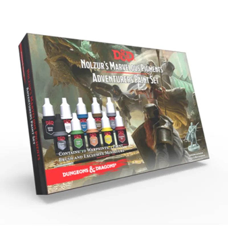 Nolzurs Marvelous Pigments Adventurers Paint Set je kao i ostali setovi iz serije Dungeons and Dragons, jedinstven. Sve boje iz ovog seta jedinstvene su samo za ovaj set a od promotivnih stvari tu je i figurica, Minsc & Boo.