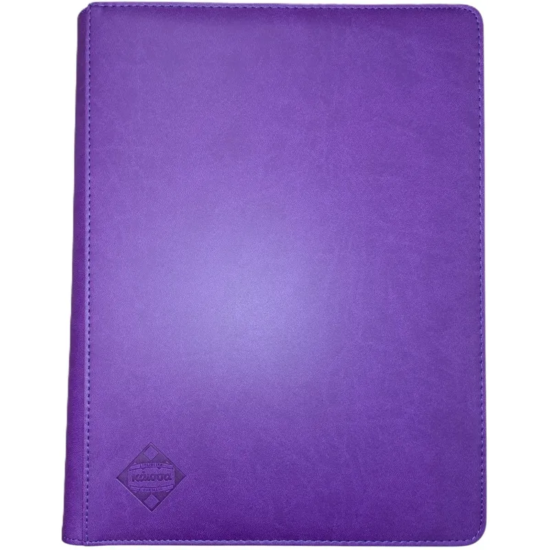 Kaissa 9-Pkt Premium Binder Purple je album pogodan za sve TCG kartične igre (Yu-Gi-Oh!, MTG, Pokemon...) i standardne veličine karata koje se nalaze u većini društvenih igara, bilo da su u zaštitama za karte takozvanim slivovima ili ne. Sadrži 20 listova koji se sastoje iz 18 (devet po strani) pregrada što je sve ukupno 360 pregrada predviđeno za vaše karte. U pregrade može stati i više karata što je pogodno kod duplikata. Unapređen dizajn pregrada, karte se u pregrade ubacuju sa strane radi lakšeg pristupa i dodatne zaštite karata u vidu sprečavanja da iste ispadaju iz albuma. Korice su od meke kože, jednobojne sa utisnutim logotipom. Kao dodatno osiguranje da se album neće nepoželjno otvarati tu je i elastična traka.