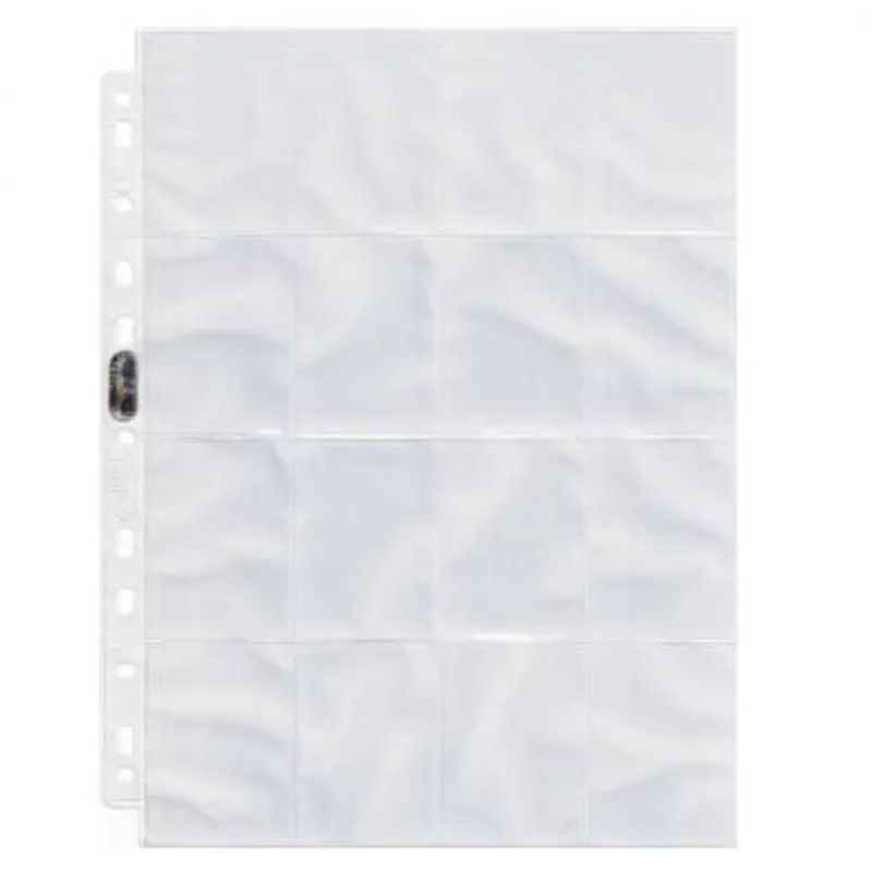 Ultra Pro 16-pkt Clear Pages stranice za skladištenje i čuvanje karata dimenzija 41mmx63mm, sačuvaće vaše karte od oštećenja. Stranice su napravljene tako da se savršeno uklapaju u bindere, a svaka stranica ima po 16 mesta za karte (samo sa jedne strane).