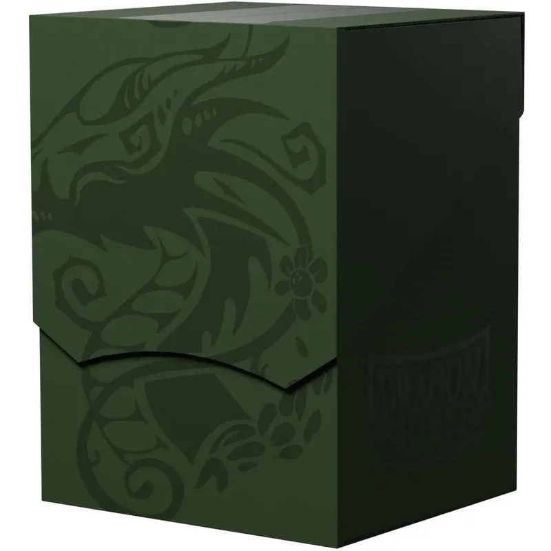 Dragon Shield Deck Shell Forest Green čvrsta kutijica sa dva sloja zaštite za čuvanje do 100+ karata (Pokemon, Yu Gi Oh, MTG ili bilo koji TCG sa standardnom veličinom karata) zaštićenih slivovima. Poklopac se obmotava oko kutije radi sigurnijeg zatvaranja ili se može potpuno rasklopiti radi lakšeg pristupa kartama. Svaka Double Shell kutijica sadrži separator za karte i na vrhu ima polje za zapisivanje.