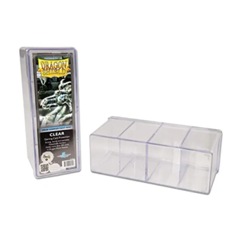 Sa Dragon Shield providnom kutijicom sa četiri zasebna odeljka možete sa sobom da ponesete i četiri svoja špila.. Odeljci su podeljeni tako da svaki odeljak pruža sigurnost za 80 karata u svojim slivovima. Kutijica je savršena za bilo koji TCG ili za bilo koju društvenu igru koja ima dosta karata. Dimenzije karata su standard (63×88 mm) ili japanske (small) (59×86 mm).