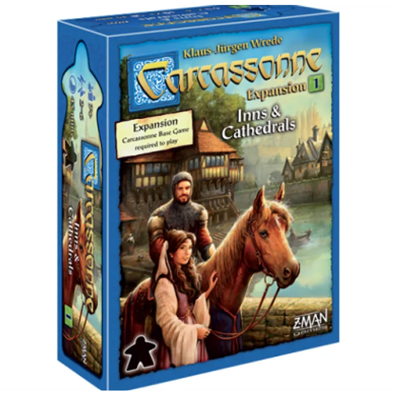 Carcassonne Inns & Cathedrals je ekspanzija za popularnu igru društvenu igru Carcassonne i donosi vam nove pločice sa gostionicama i katedralama kao i mogućniost da se u igru ubaci šesti igrač (pink boja) ali i figurica “mega radnika” koji se računa kao dve obične figurice. Gostionice će uvek biti pored puta na pločicama i one će vam doneti duplo više poena za puteve koje napravite, ali ako ih ne završite ne dobijate ništa! Katedrale menjaju gradove jer ako u grad ubacite katedralu ona će vam otežati završavanje grada ali će vam takođe doneti po tri poena po pločici ako to uspete! Rizik postoji a na vama je da procenite da li se isplati… Pored toga sada imate i nekoliko novih pločica koja će vas malo zbuniti i naterati vas da dodatno razmišljate.