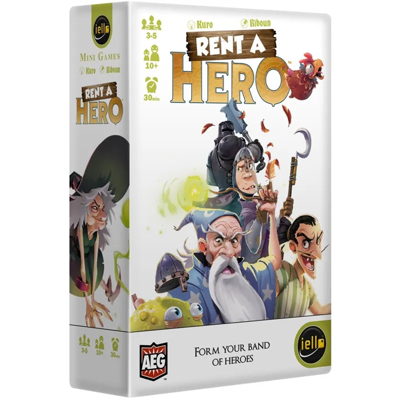 Društvena igra Rent a Hero je jednostavna igra blefiranja i strategije u kojoj ćete probati da nadmudrite svoje protivnike i pokvarite im planove. Obratite pažnju na sve detalje, sledite svoj instinkt i koristite moći svojih heroja do maksimuma kako biste pobedili u ovoj igri! Ova igra donosi špil od 77 karata, a na svakoj se nalazi jedan od sedam različitih heroja. Igrači počinju sa setom od dva nasumična heroja, a svaki od njih ima svoje sposobnosti koje se mogu iskoristiti samo jednom. Na svakom potezu igrač daje kartu iz ruke drugom igraču koji može da odluči da je zadrži ili prosledi dalje. Prilikom donošenja ove odluke svaki igrač mora da bude oprezan jer može da ostane bez heroja! Igrač koji prvi sakupi šest od sedam heroja je pobednik! Da li ste spremni da izmanipulišete ostale i pobedite?